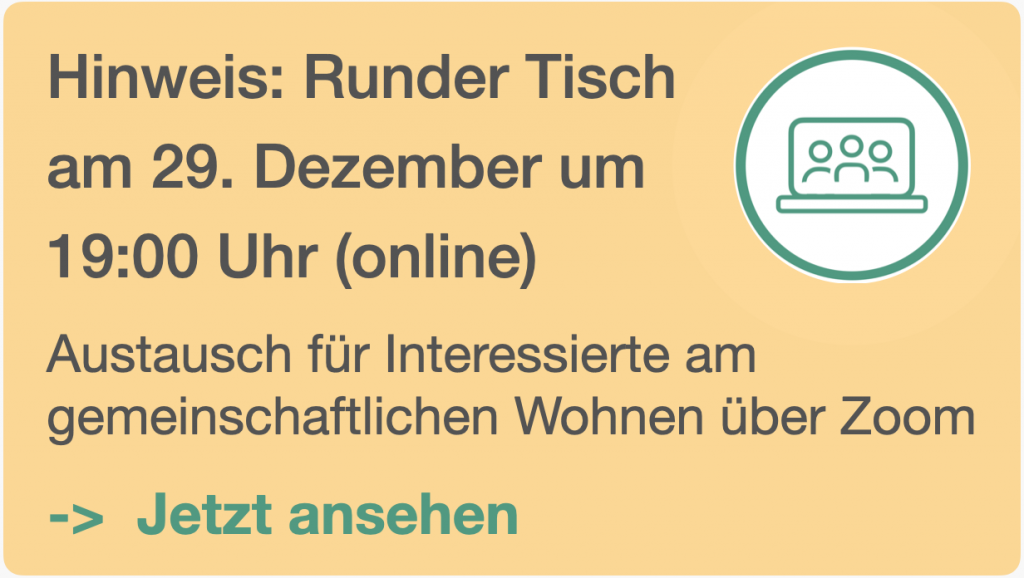 | Forum für gemeinschaftliches Wohnen | Ein bundesweites Netzwerk, das gemeinschaftliche Wohnformen durch Beratung, Vernetzung und Förderung unterstützt. Es dient als Plattform für den Austausch von Wissen und Erfahrungen rund um innovative Wohnkonzepte. |